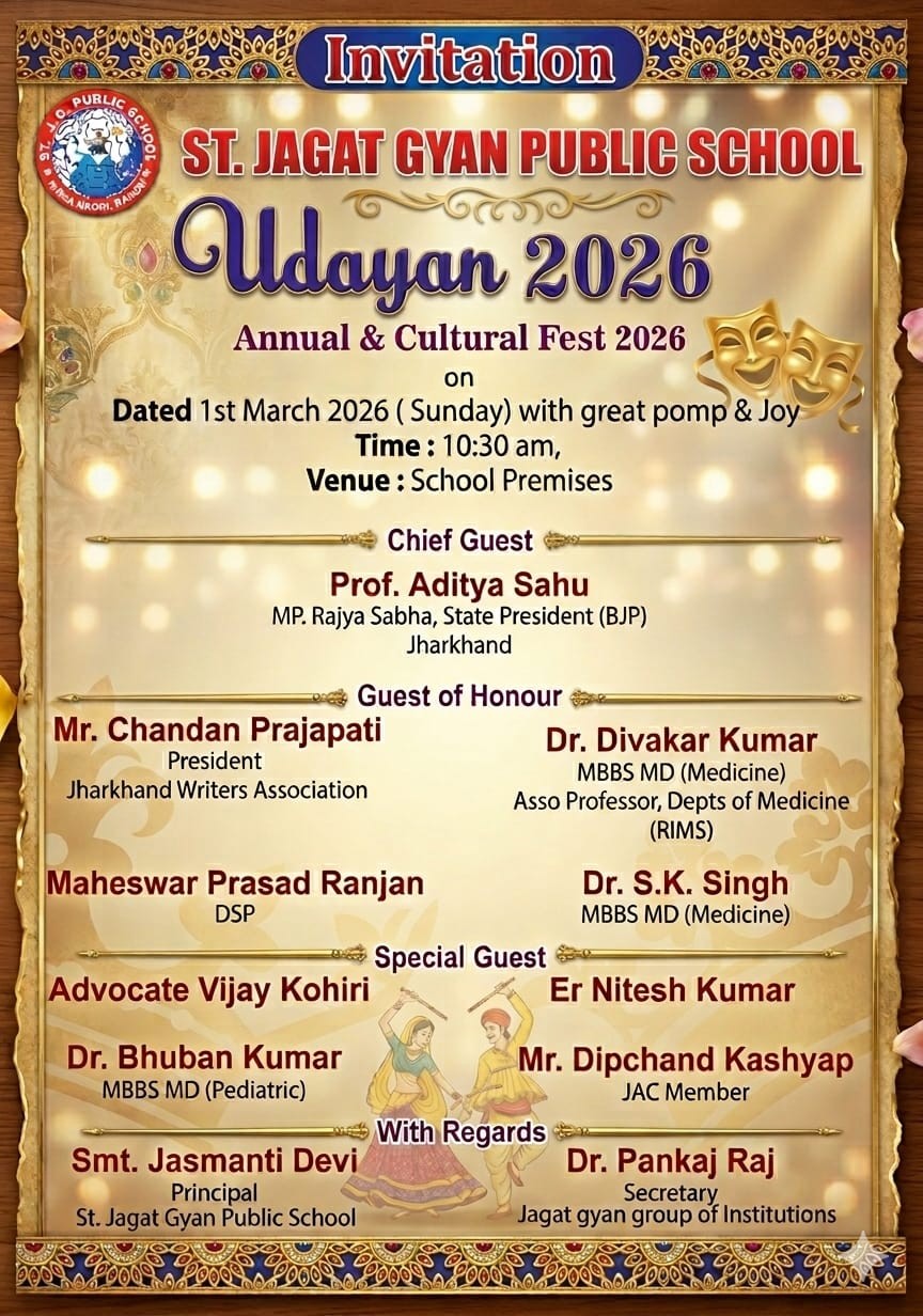 Welcome to St. Jagat Gyan Senior Secondary Public School, where we believe in nurturing young minds to become true leaders of our society. As the founder of this school, I am driven by the passion to create a place where learning encompasses not only academics but also personal growth, creativity, and character development. We envision a school where students feel safe to explore, fail, learn, and succeed.